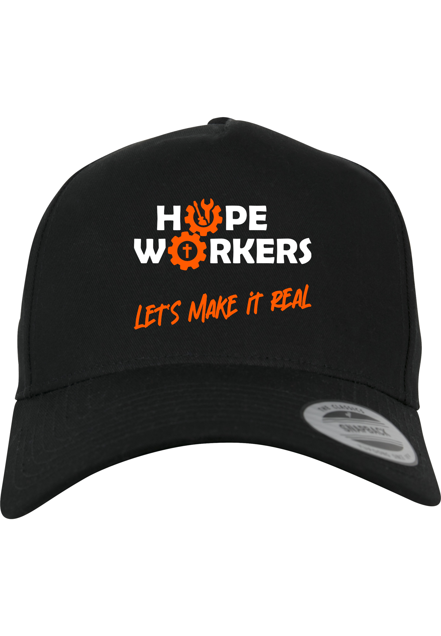 Eine Baseball-Cap geht immer. Deshalb haben die HOPEWORKERS ihr Logo auch auf einer Baseballcap herausgebracht.